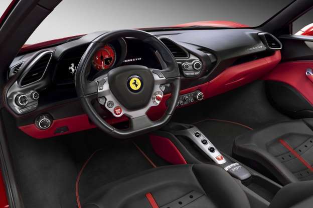 Ferrari 488 GTB的座艙融匯了科技元素和豪華裝飾,全新的多功能控制區、極具造型的出風口與儀表板完美融合,營造以駕駛為核心的整體駕駛艙設計。實用性設計使得Ferrari 488 GTB不僅具有賽車內裝的動感造型,同時兼顧車主的舒適體驗。當然,經典的Ferrari元素也同樣不可或缺,如儀表板與中央扶手的設計、多功能方向盤、中央扶手上的控制橋以及包裹式真皮座椅,車內資訊娛樂系統的圖像和介面也經過了全新設計。