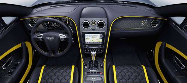 車輛內飾延續了定制的主題顏色,座椅同樣採用了百年靈標誌性的黃色