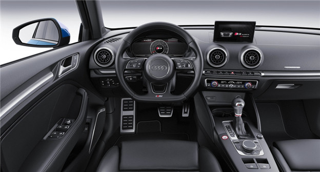 內裝方面在 A3 車系的基礎上添加了 S3 專屬套件,包括跑車型前座椅、三輻式真皮多功能方向盤、專屬鋁合金門檻/踏板以及 S 專屬排檔座,呈現出濃濃的跑車氣息;不過最搶眼之處莫過於標配的 12.3 Virtual Cockpit 虛擬儀表板,提供豐富行車訊息並有專屬儀表畫面,還能與 7 MMI Navigation plus 多媒體系統的中文衛星導航、Apple CarPlay 等功能連結,此外還配備 Bang & Olufsen 音響系統與全景玻璃天窗。