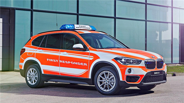 在本屆展覽中,新世代的 X3 當然是最受矚目的新品之一,甫於強大的適地性與空間機能,不論是用做救援或是指揮車都能恰如其分的扮演好角色,BMW 也賦予該車專屬塗裝,並增設 230v 的主電源插孔與多處 12v 供電孔,以及專用的導航、通訊系統、警示燈組,並於後廂安置 2kg 的滅火器,在可靠的跨地形能力與動力驅策下,足以讓救護人員迅速抵達事故地點,展開第一線的救援任務。