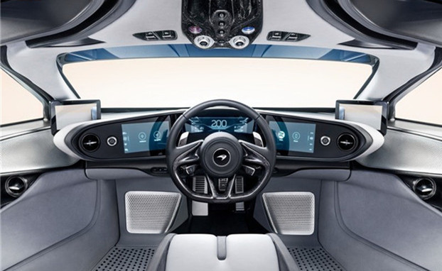 McLaren Speedtail繼承三座旗艦設計,擁有完全置中的駕駛座設計、左右對稱的中控台,全數位化的座艙與設計也帶來前衛感受。