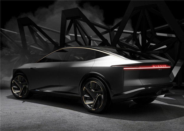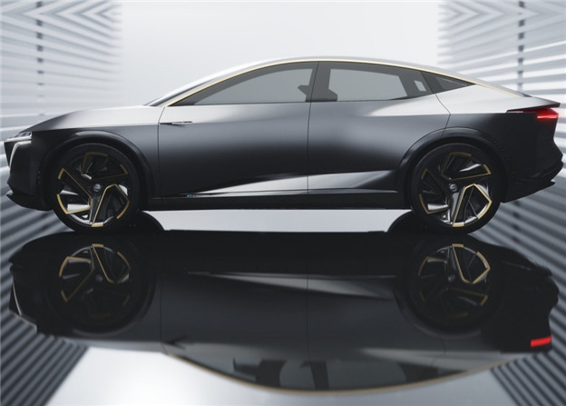 在品牌的設想中,Nissan IMs Concept 擁有比一般房車略高的離地設定,從廠圖中不難發現,兩道狹長的日行燈負責延續 V-Motion 家族語彙,車身上更藉由無 B 柱設計與電子後視鏡,賦予簡潔俐落的視覺感受,其中也融入金色的裝飾線條,足踏 22 吋的輪圈則是帶來跑格搬的動感氣勢。
