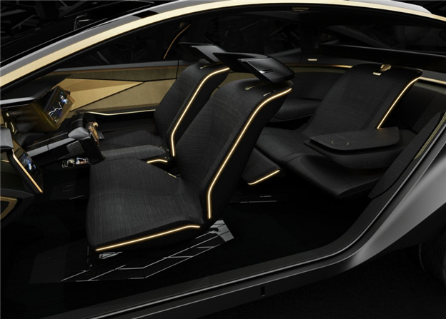 打開對開式的車門後,IMs Concept 採用深色織布與金色元素,並導入大和民族獨有 Asanoha 幾何圖樣,將日本傳統的典雅風味完美地與科技交融。此外,獨特的「2+1+2」式座椅佈局,使得後座中央乘客可以享受尊榮無比的乘坐感受,兩旁扶手亦可收起,提供充裕的乘載能力。原廠表示,該車的內裝設計靈感,係取自於「航向月球的太空飛船」,舉凡宛如太空艦駕駛艙的座椅佈局,以及比照月球陰影變化設計的光影輪廓,都昭示了設計師的獨到功力。