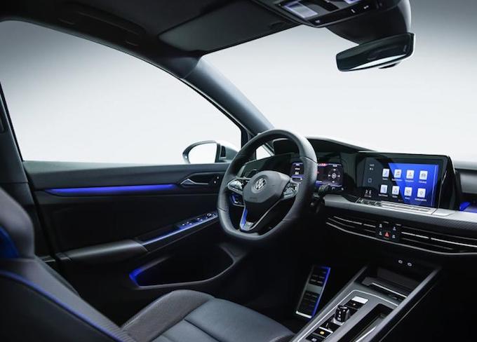 外觀方面,新車延續了全新Golf 的整體外觀設計,包含最新家族式設計風格的頭燈,並在前格柵內加入了發光LED燈帶設計。同時,作為Golf 車系中性能最強的版本,為了性能進一步優化,配備全新設計開口誇張的的前保險槓、車尾擾流板、下方部分擴散器,讓其整體看上去更加凶狠。裝配19英吋輪圈,Y字形五輻輪圈配合R系列招牌的藍色卡鉗,讓新車的辨識度得到很好地提升。