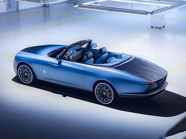 鬼面罩依然採用勞斯萊斯經典的「帕特農神廟」設計,但頭燈更加扁平和細長的尾燈相互輝映。車尾展示了最好的手工設計和尖端的工程技術。因為在傳統後備廂的位置,勞斯萊斯為其定制了類似於遊艇甲板般的待客區。「甲板」由灰黑色開孔Caleidolengo飾板製成,中間還設計了一把可折疊的專屬太陽傘,甚至在「甲板」下層還準備了兩張由勞斯萊斯設計、意大利傢具品牌Promemoria精心打造的雞尾酒凳。在內部,則是為用戶打造的一整套戶外用餐的餐具,以及可以在6攝氏度下快速冷藏的香檳冰箱。
